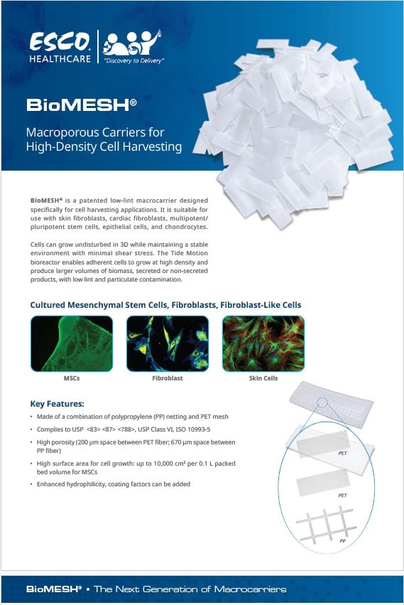 BioMESH® is a patented low-lint macroporous carrier designed specifically for cell harvesting applications. It is suitable for growing cells such as multipotent/pluripotent stem cells, skin fibroblasts, cardiac fibroblasts, epithelial cells, and chondrocytes.
